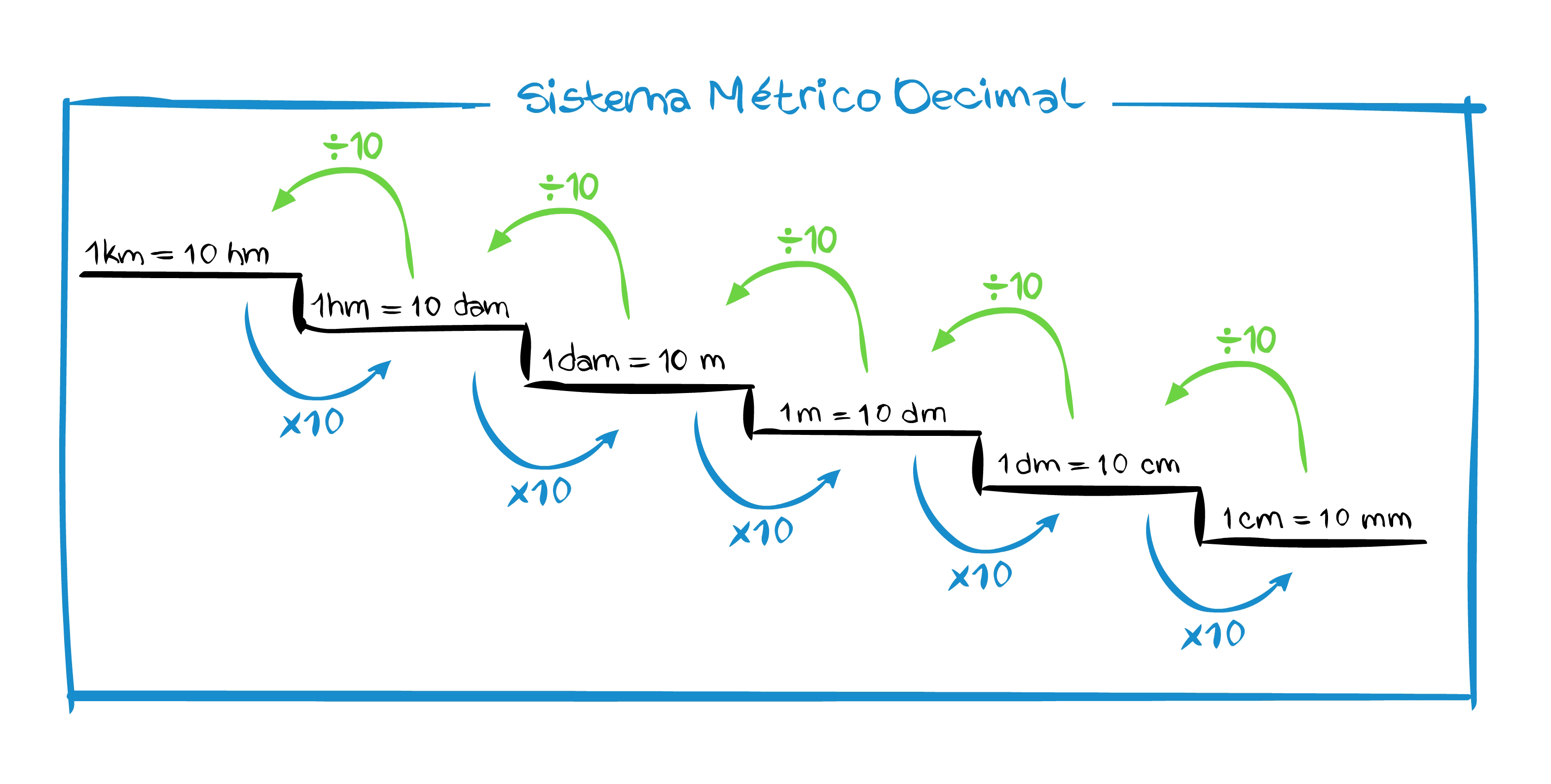 La transformación de unidades del sistema métrico decimal es uno de los contextos en el que más se utilizan las fracciones decimales. Esto se debe a que la escala de medidas que se utiliza es decimal. Es el caso de la transformación de longitudes, en el que la unidad base es el metro (ver figura). Al utilizar esta escala, un estudiante intenta demostrar que la distancia de su casa a la escuela es de 15 km, dado que ya había sido medida y corresponde a %%1,5\times 10^{4}%%m. ¿qué se puede decir sobre su razonamiento?