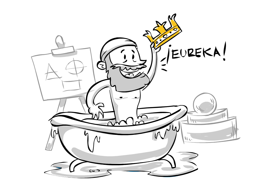 En el siglo III A.C., el rey que gobernaba Siracusa pidió a un orfebre que le hiciera una corona con un lingote de oro. Al recibirla, el rey mandó llamar a Arquímedes, un famoso matemático de la época para que verificara si la corona era de oro puro o contenía plata. Pensando en ese trabajo y mientras tomaba un baño en su tina, Arquímedes se percató de que el nivel del agua subía cuando él se sumergía y, además, que se desbordaba de la tina. En seguida comenzó a asociar conceptos y sin vestirse salió corriendo por las calles gritando ¡eureka! (lo he encontrado). En el experimento de la tina de Arquímedes, ¿a qué corresponde la cantidad de agua que sale de la tina cuando él se sumerge?